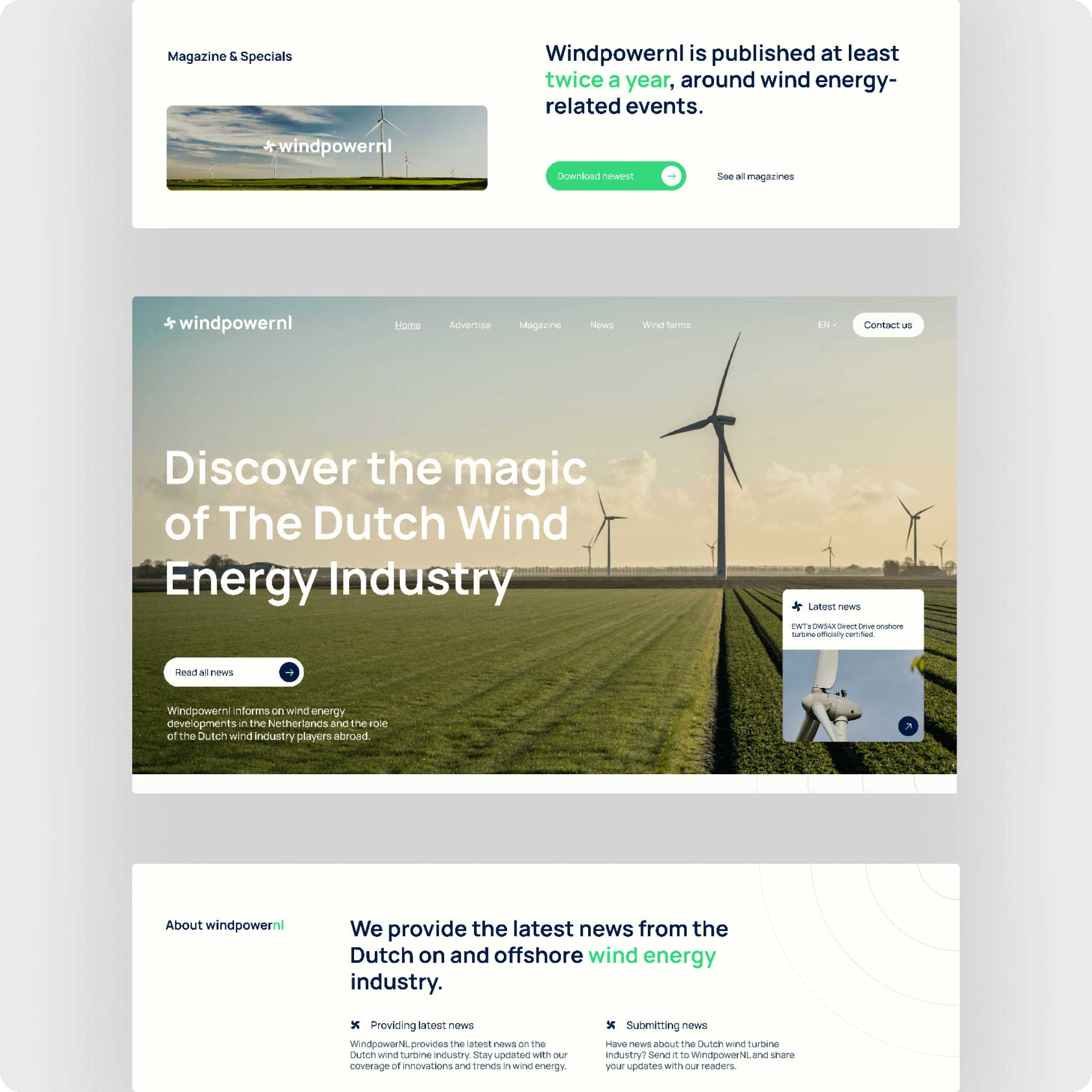 Een complete redesign voor de website en het logo van Windpowernl. De verouderde en onoverzichtelijke website en logo transformeerde ik naar een moderne en duurzame website.